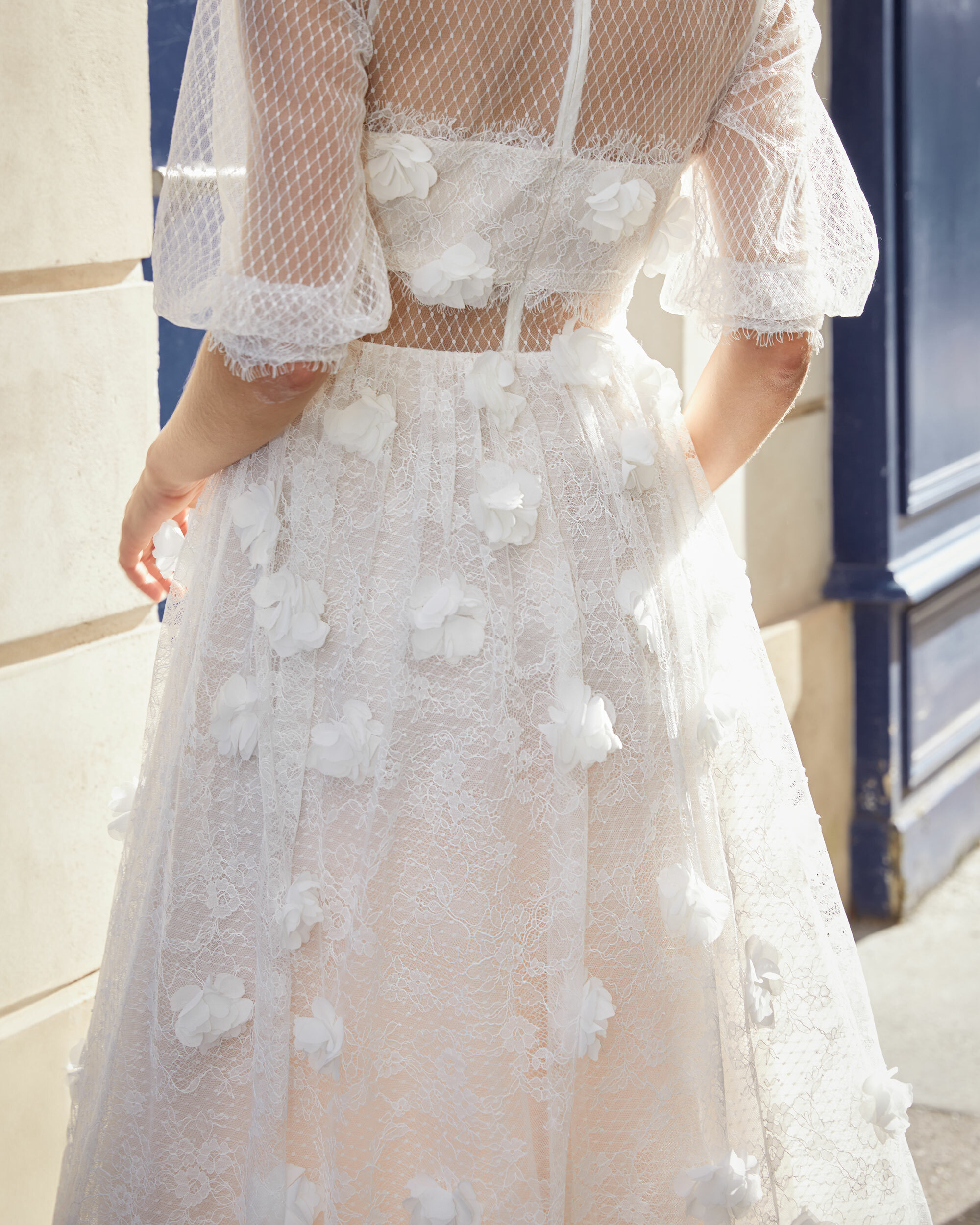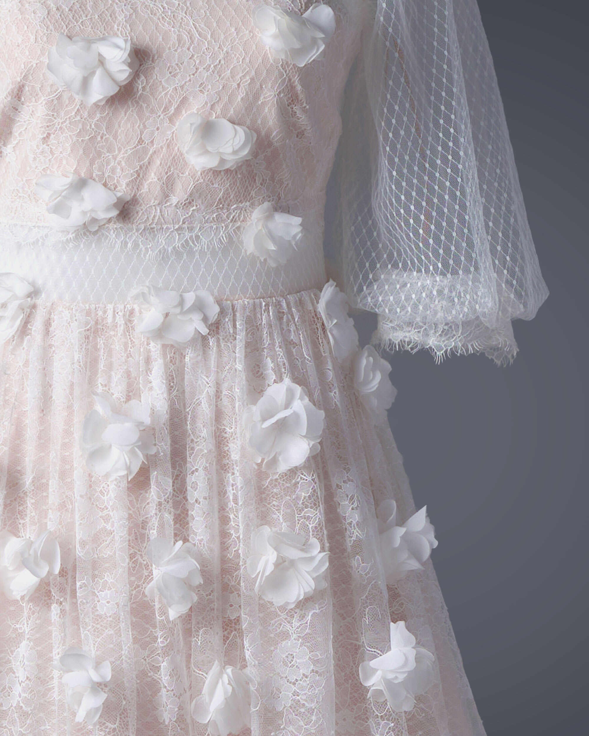 ▶ 蕾絲面料擁有細膩的花樣刺繡、貼花、縫珠等精緻工藝